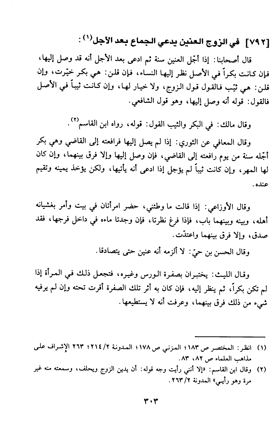 792 - فِي الزَّوْج الْعنين يَدعِي الْجِمَاع بعد الْأَجَل