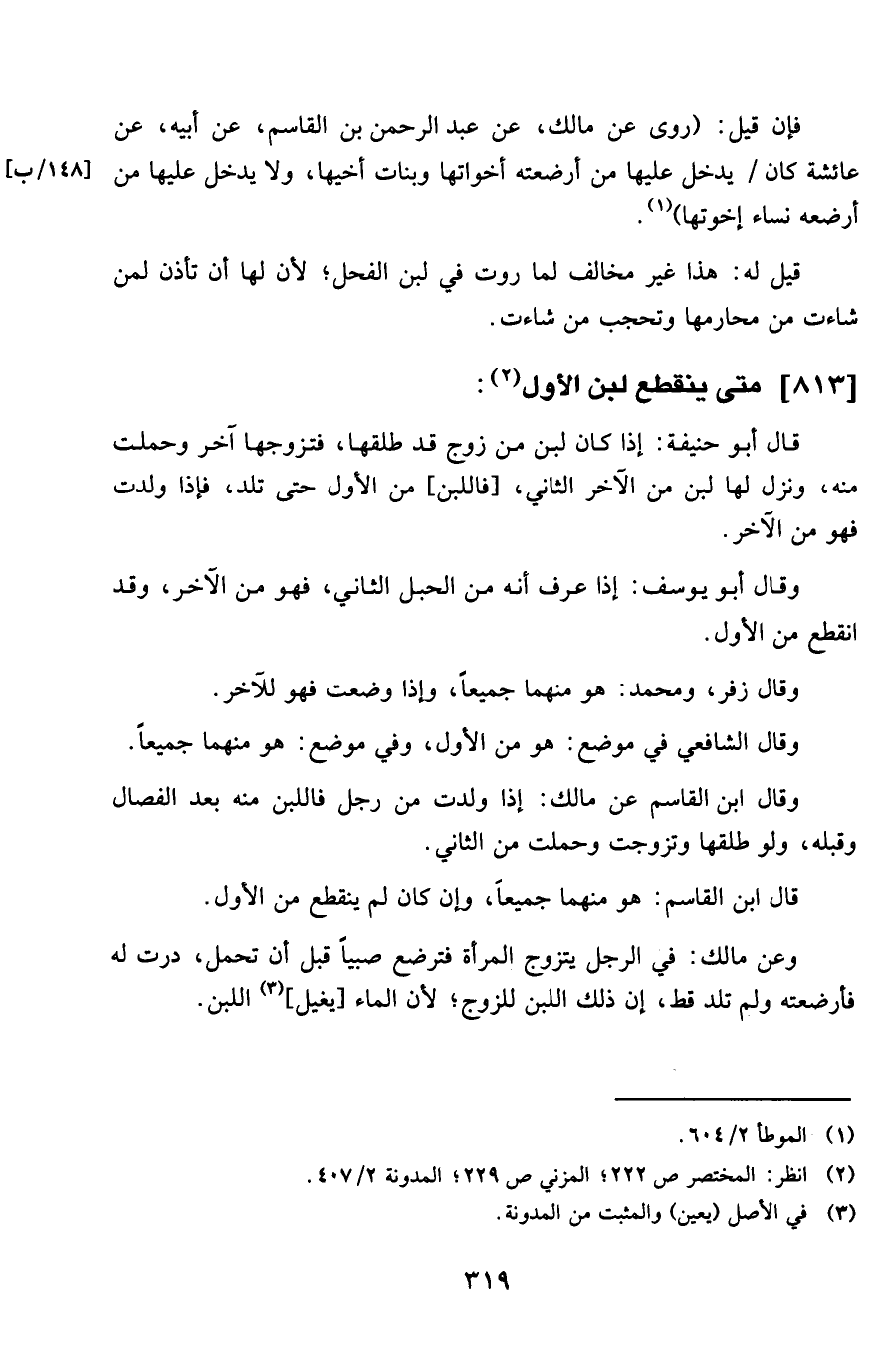 ققال ابْن الْقَاسِم هُوَ مِنْهُمَا جَمِيعًا وَإِن كَانَ لم يَنْقَطِع من الأول