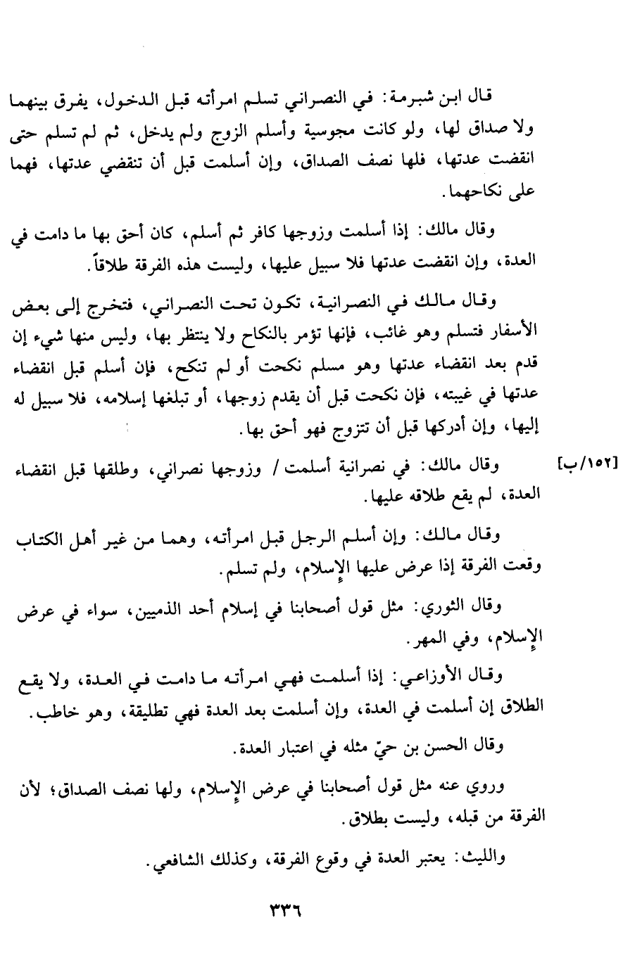 وَقَالَ مَالك فِي النَّصْرَانِيَّة تكون تَحت النَّصْرَانِي فَتخرج إِلَى بعض الْأَسْفَار فتسلم وَهُوَ غَائِب فَإِنَّهَا تؤمن بِالنِّكَاحِ وَلَا ينْتَظر بهَا وَلَيْسَ مِنْهَا شَيْء إِن قدم بعد انْقِضَاء عدتهَا وَهُوَ مُسلم نكحت أَو لم تنْكح فَإِن أسلم قبل انْقِضَاء عدتهَا فِي غيبته فَإِن نكحت قبل أَن يقدم زَوجهَا أَو تبلغها إِسْلَامه فَلَا سَبِيل لَهُ إِلَيْهَا وَإِن أدْركهَا قبل أَن تتَزَوَّج فَهُوَ أَحَق بهَا