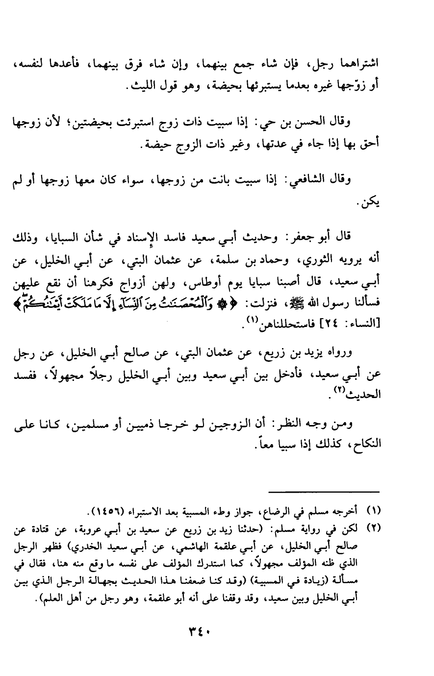 قَالَ أَبُو جَعْفَر وَحَدِيث أبي سعيد فَاسد الاسناد فِي شَأْن السبايا وَذَلِكَ أَنه يرويهِ لثوري وَحَمَّاد بن سَلمَة عَن عُثْمَان البتي عَن أبي الْخَلِيل عَن أبي سعيد قَالَ أصبْنَا سَبَايَا يَوْم أَوْطَاس ولهن أَزوَاج فكرهنا أَن نقع عَلَيْهِنَّ فسألنا رَسُول الله صلى الله عَلَيْهِ وَسلم فَنزلت {وَالْمُحصنَات من النِّسَاء إِلَّا مَا ملكت أَيْمَانكُم} النِّسَاء 24 فاستحللناهن