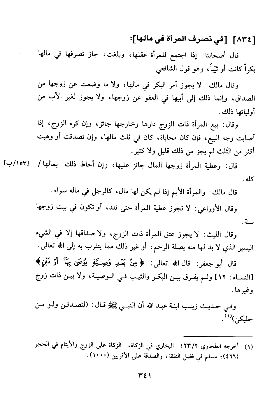 834 - فِي تصرف الْمَرْأَة فِي مَالهَا