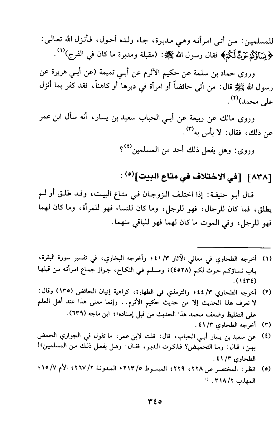 وروى حَمَّاد بن سَلمَة عَن حَكِيم الْأَثْرَم عَن أبي تَمِيمَة عَن أبي هُرَيْرَة عَن رَسُول الله صلى الله عَلَيْهِ وَسلم قَالَ من اتى حَائِضًا أَو امْرَأَة فِي دبرهَا أَو كَاهِنًا فقد كفر بِمَا أنزل على مُحَمَّد