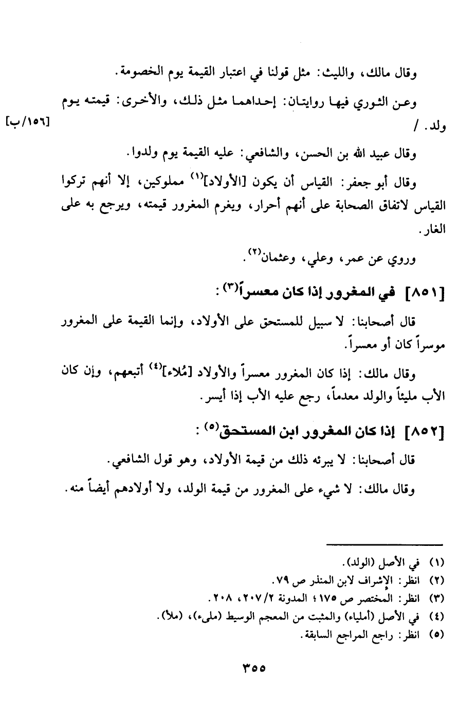 وَعَن الثَّوْريّ فِيهَا رِوَايَتَانِ إِحْدَاهمَا مثل ذَلِك وَالْأُخْرَى قِيمَته يَوْم ولد (156 ب)