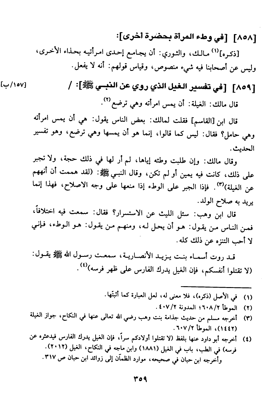 858 - فِي وَطْء الْمَرْأَة بِحَضْرَة أُخْرَى