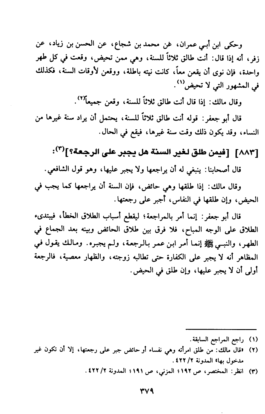 883 - فِيمَن طلق لغير السّنة هَل يجْبر على الرّجْعَة