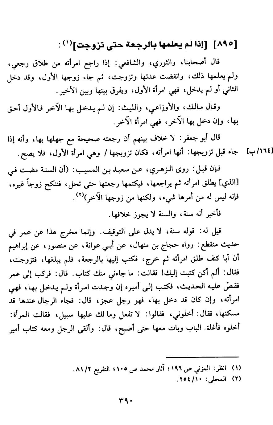 قَالَ أَبُو جَعْفَر لَا خلاف بَينهم أَن رجعته صَحِيحَة مَعَ جهلها بهَا وَأَنه إِذا (164 ب) جَاءَ قبل تَزْوِيجهَا أنهاامرأته فَكَانَ تَزْوِيجهَا وَهِي امْرَأَة الأول فلايصح