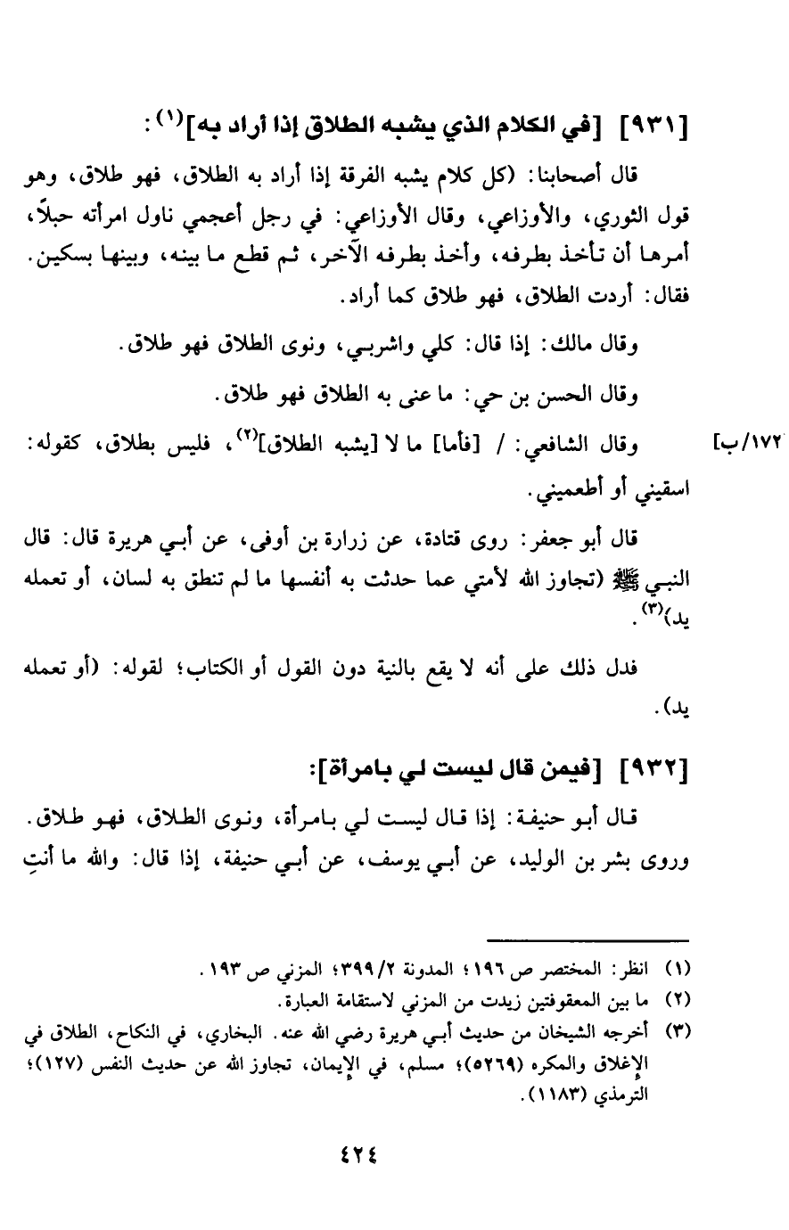 931 - فِي الْكَلَام الَّذِي يشبه الطَّلَاق إِذا أَرَادَ بِهِ