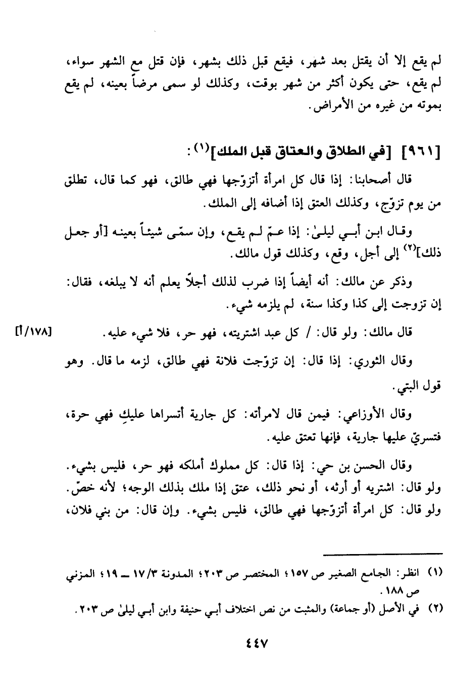 961 - فِي الطَّلَاق وَالْعتاق قبل الْملك