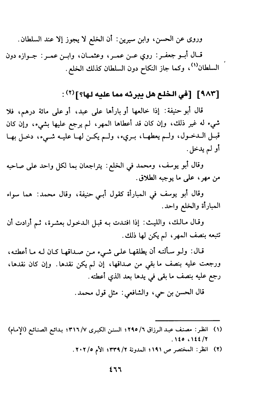 983 - فِي الْخلْع هَل يُبرئهُ مِمَّا عَلَيْهِ لَهَا