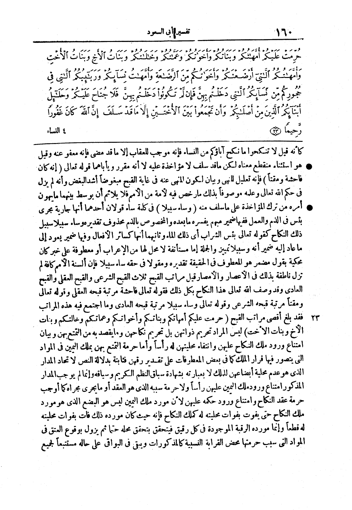 23 - النساء كأنه قيل لا تنكِحوا ما نكح آباؤكم من النساء فإنه موجبٌ للعقاب إلا ما قد مضى فإنه معفوٌّ عنه وقيل هو استثناءٌ منقطعٌ معناه لكنْ ما قد سلف لا مؤاخذةَ عليه لا أنه مقرَّرٌ ويأباهما قولُه تعالى