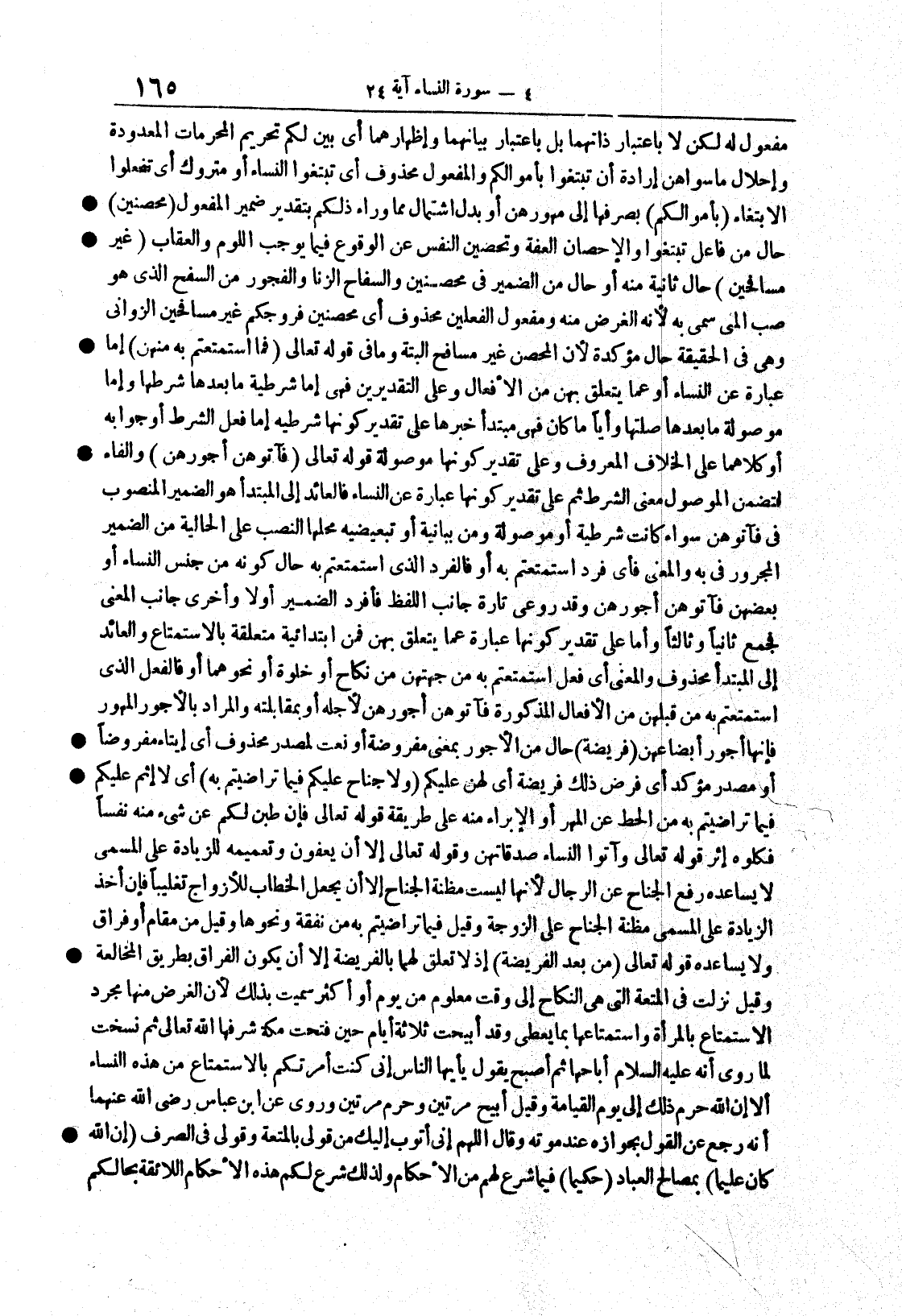 {فآتوهنَّ أجورهُنَّ} والفاءُ لتضمُّن الموصولِ معنى الشرطِ ثم على تقدير كونِها عبارةً عن النساء فالعائدُ إلى المبتدأ هو الضميرُ المنصوبُ في فآتوهن سواءٌ كانت شرطيةً أو موصولةً ومن بيانيةٌ أو تبعيضيةٌ محلُّها النصبُ عَلى الحاليةِ منَ الضميرِ المجرورِ في به والمعنى فأيُّ فردٍ استمتعتم به أو فالفردُ الذي استمتعتم به حالَ كونِه من جنس النساءِ أو بعضِهن فآتوهن أجورهن وقد روعيَ تارةً جانبُ اللفظِ فأُفرِدَ الضميرُ أولاً وأخرى جانبُ المعنى فجمع ثانياً وثالثاً وأما على تقدير كونِها عبارةً عما يتعلق بهن فمن ابتدائيةٌ متعلقةٌ بالاستمتاع والعائدُ إلى المبتدأ محذوفٌ والمعنى أيُّ فعلٍ استمتعتم به من جهتهن من نكاح أو خلوةٍ أو نحوِهما أو فالفعلُ الذي استمتعتم به من قِبَلهن من الأفعال المذكورةِ فآتوهن أجورَهن لأجله أو بمقابلته والمرادُ بالأجور المهورُ فإنها أجورُ أبضاعِهن