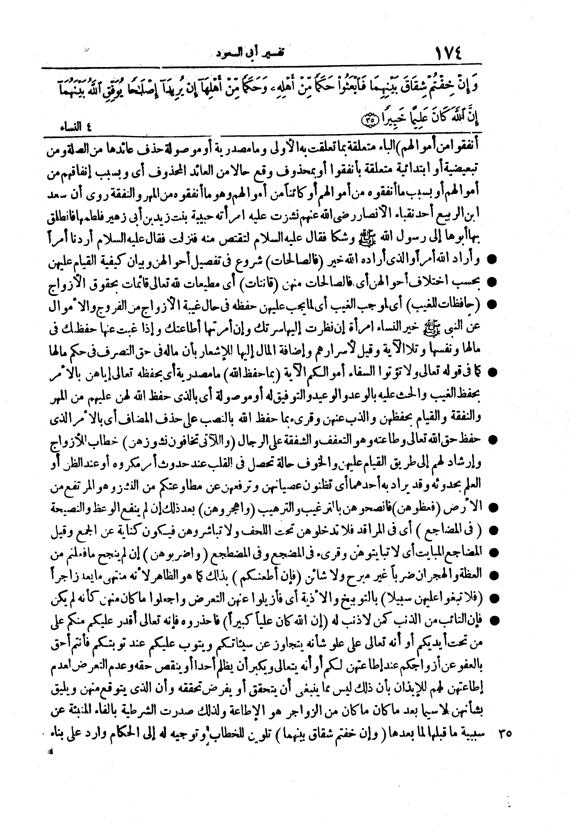 {إِنَّ الله كَانَ عَلِيّاً كَبِيراً} فاحذَروه فإنه تعالى أقدرُ عليكم منكم على مَنْ تحت أيديكم أو أنه تعالى على علو شأنِه يتجاوز عن سيئاتكم ويتوبُ عليكم عند توبتِكم فأنتم أحقُّ بالعفو عن أزواجكم عند إطاعتهن لكم أوأنه يتعالى ويكبُر أن يظلمَ أحداً أو ينقُصَ حقَّه وعدمُ التعرضِ لعدم إطاعتِهن لهم للإيذان بأن ذلك ليسَ ممَّا ينبغِي أنْ يتحققَ أو يُفرضَ تحققُه وأن الذي يُتوقع منهن ويليق بشأنهن لاسيما بعد ما كان من الزواجر هو الإطاعةُ ولذلك صُدِّرت الشرطيةُ بالفاء المُنْبئةِ عن سببية ما قبلَها لما بعدَها