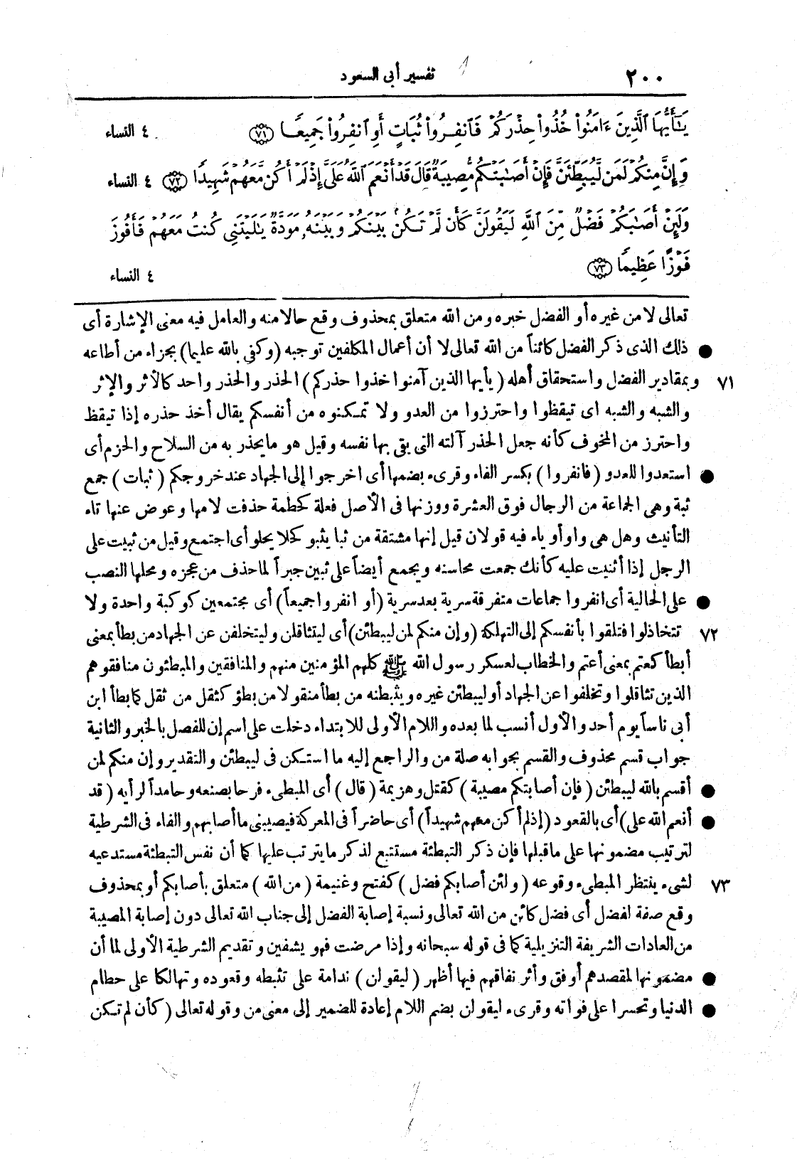 71 - 72 73 النساء تعالى لا من غيرِه أو الفضل خبره ومن الله متعلقٌ بمحذوفٍ وقعَ حالاً منه والعاملُ فيه معنى الإشارةِ أي ذلك الذي ذكر الفضل كائناً من الله تعالى لا أن أعمالَ المكلفين توجبه