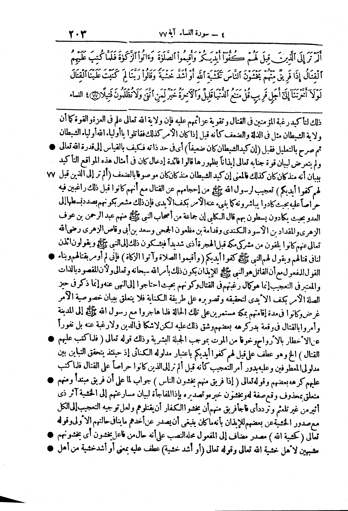 {أَلَمْ تَرَ إِلَى الذين قِيلَ لَهُمْ كُفُّواْ أَيْدِيَكُمْ} تعجيب لرسول الله صلى الله عليه وسلم من إحجامهم عن القتال مع إِنَّهُمْ كَانُواْ قَبْلَ ذَلِكَ راغبين فيه حِراصاً عليه بحيث كادوا يباشرونه كما ينبئ عنه الأمرُ بكفّ الأيدي فإن ذلك مُشعرٌ بكونهم بصدد بسطِها إلى العدو بحيث يكادون يسطون بهم قال الكلبي إن جماعةً من أصحاب النبيِّ صلَّى الله عليهِ وسلم منهم عبدُ الرحمن بنُ عوفٍ الزُّهري والمقداد بنُ الأسودِ الكنديُّ وقُدامةُ بنُ مظعونٍ الجُمَحي وسعدُ بنُ أبي وقاص الزُّهري رضي اله تعالى عنهم كانوا يلقَوْن من مشركي مكةَ قبل الهجرةِ أذى شديداً فيشكون ذلك إلى النبيِّ صلَّى الله عليهِ وسلم ويقولون ائذنْ لنا في قتالهم ويقول لهم النبيِّ صلَّى الله عليهِ وسلم كُفّوا أيديَكم