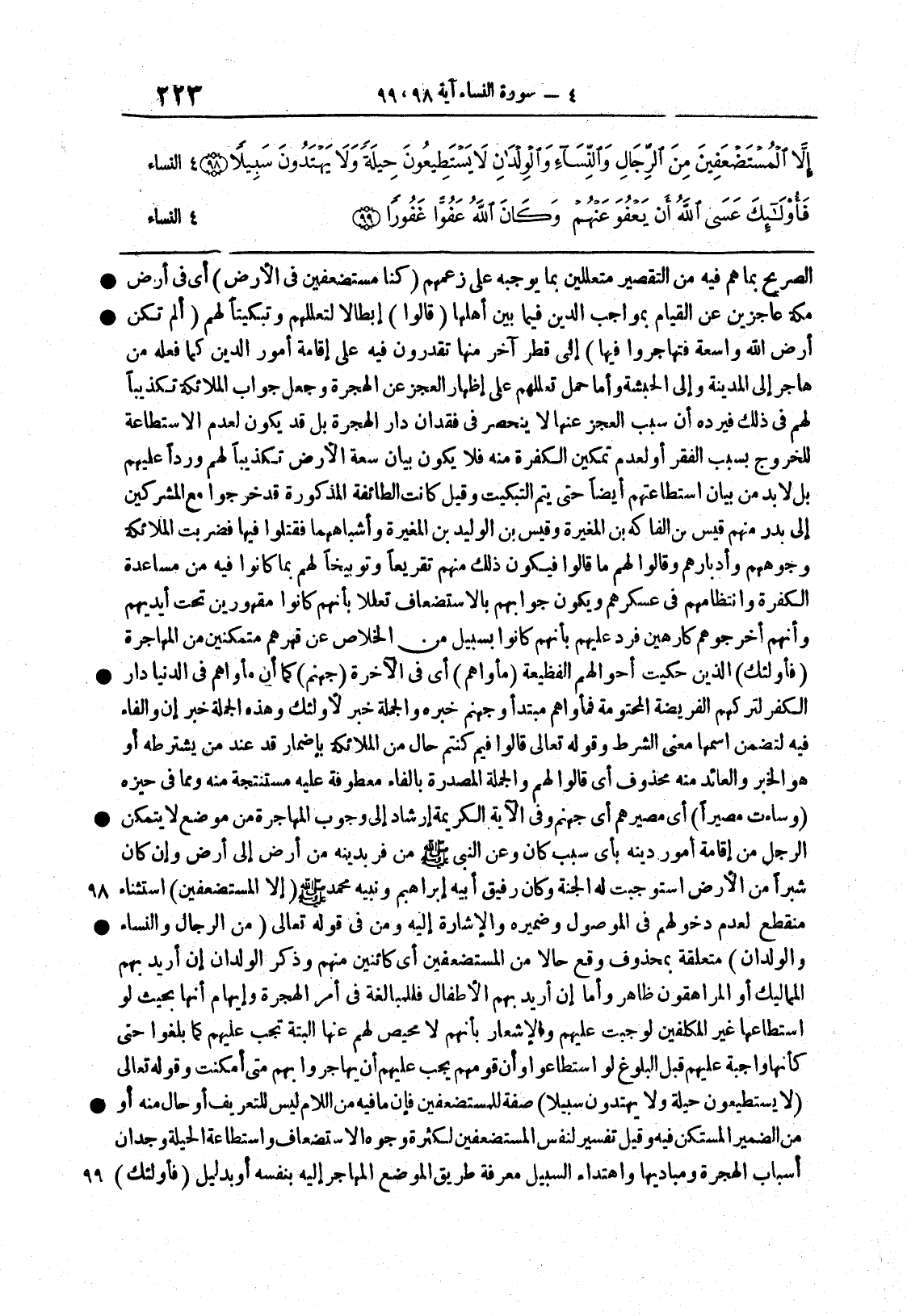 98 - 99 النساء الصريحِ بما هُم فيه من التقصير متعلِّلين بما يوجبه على زعمهم