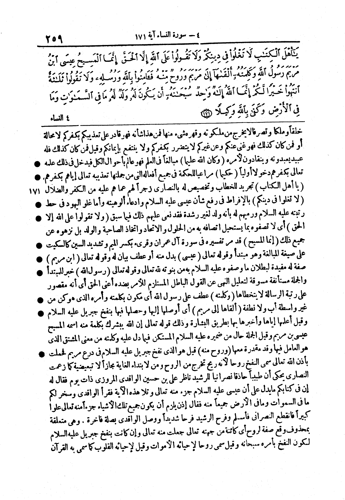 171 - النساء خلقا وملكا وتصرفا لا يخرُج من ملكوته وقهرِه شيءٌ منها فمَنْ هذا شأنُه فهو قادرٌ على تعذيبكم بكفركم لا محالة أو فمن كان كذلك فهو غنيٌّ عنكم وعن غيركم لا يتضرّر بكفركم ولا ينتفع بإيمانكم وقيل فمَنْ كان كذلك فله عبيدٌ يعبُدونه وينقادون لأمره