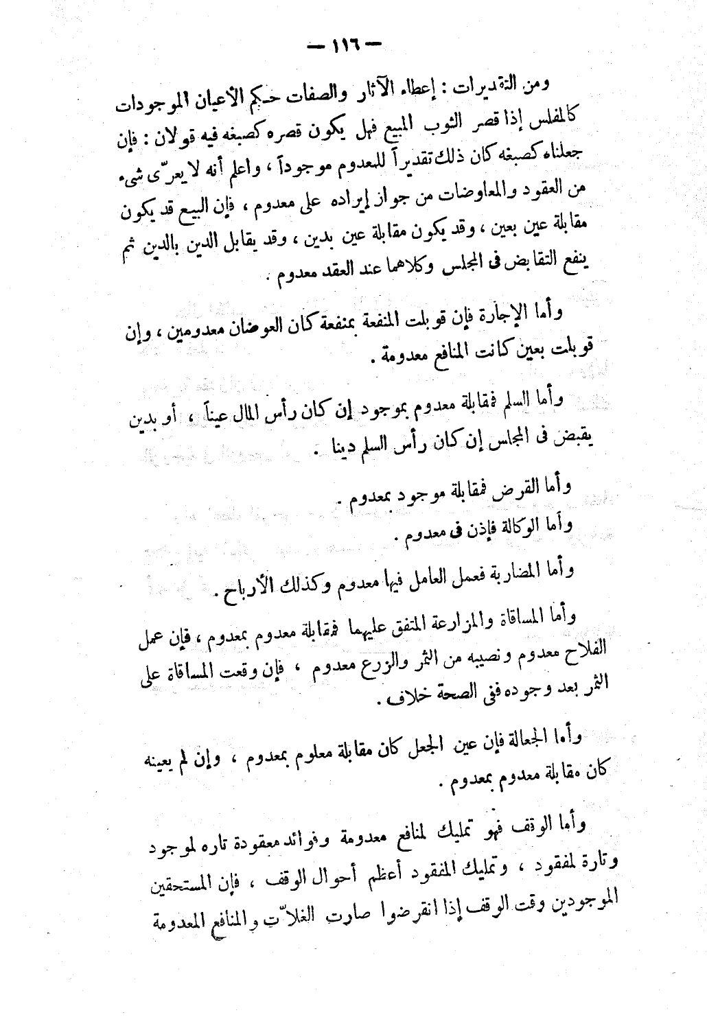 وَأَمَّا الْوَقْفُ فَهُوَ تَمْلِيكٌ لِمَنَافِعَ مَعْدُومَةٍ وَفَوَائِدَ مَعْقُودَةٍ تَارَةً لِمَوْجُودٍ وَتَارَةً لِمَفْقُودٍ، وَتَمْلِيكُ الْمَفْقُودِ أَعْظَمُ أَحْوَالِ الْوَقْفِ، فَإِنَّ الْمُسْتَحِقِّينَ الْمَوْجُودِينَ وَقْتَ الْوَقْفِ إذَا انْقَرَضُوا صَارَتْ الْغَلَّاتُ وَالْمَنَافِعُ مَعْدُومَةً