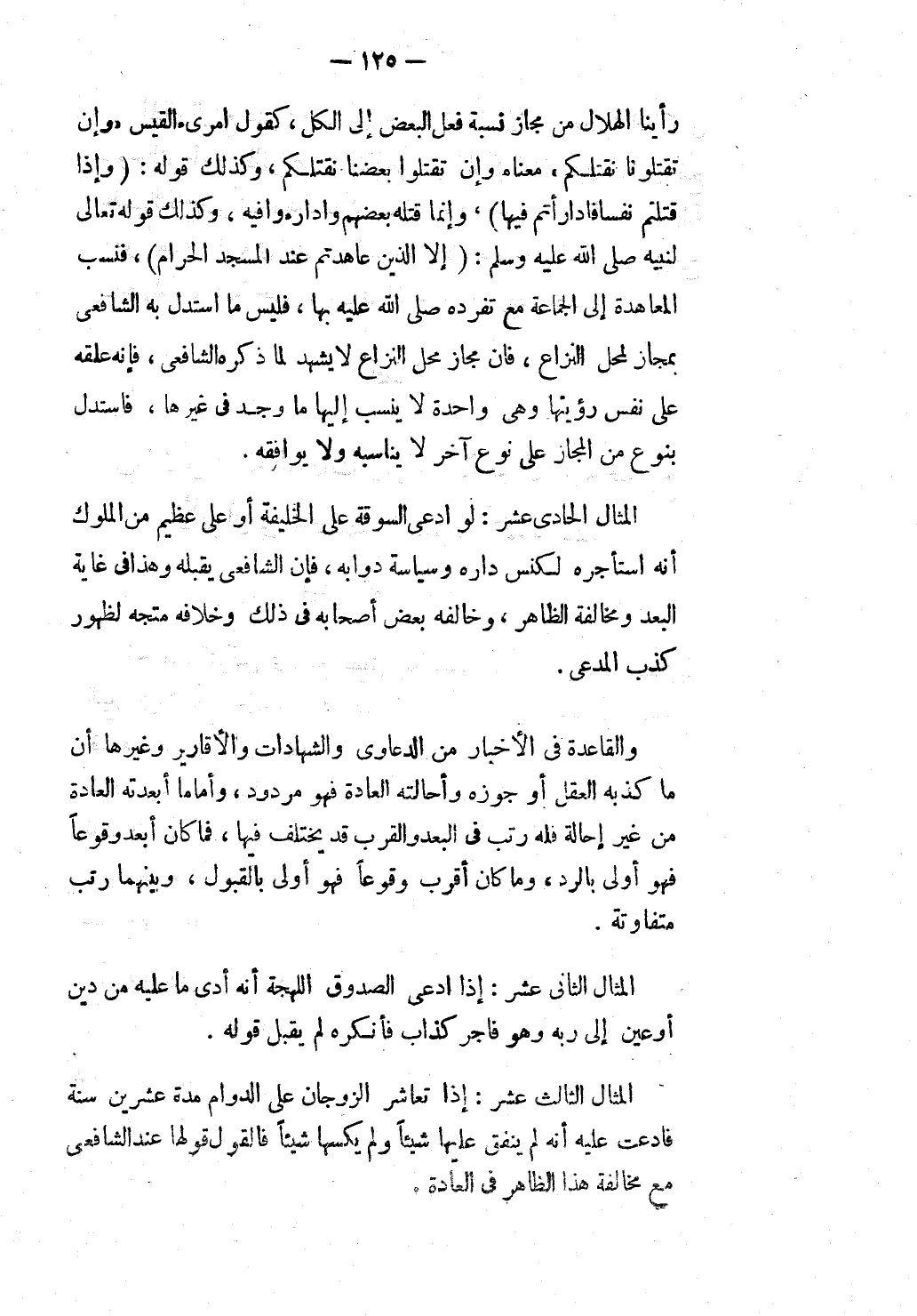 مَعْنَاهُ وَإِنْ تَقْتُلُوا بَعْضَنَا نَقْتُلْكُمْ، وَكَذَلِكَ قَوْلُهُ: {وَإِذْ قَتَلْتُمْ نَفْسًا فَادَّارَأْتُمْ فِيهَا} [البقرة: 72] ، وَإِنَّمَا قَتَلَهُ بَعْضُهُمْ وَادَّارَءُوا فِيهِ، وَكَذَلِكَ وقَوْله تَعَالَى لِنَبِيِّهِ - صَلَّى اللَّهُ عَلَيْهِ وَسَلَّمَ -: {إِلا الَّذِينَ عَاهَدْتُمْ عِنْدَ الْمَسْجِدِ الْحَرَامِ} [التوبة: 7] ، فَنَسَبَ الْمُعَاهَدَةَ إلَى الْجَمَاعَةِ مَعَ تَفَرُّدِهِ صَلَّى اللَّهُ عَلَيْهِ بِهَا، فَلَيْسَ مَا اسْتَدَلَّ بِهِ الشَّافِعِيُّ بِمَجَازٍ لِمَحَلِّ النِّزَاعِ، فَإِنَّ مَجَازَ مَحَلِّ النِّزَاعِ لَا يَشْهَدُ لِمَا ذَكَرَهُ الشَّافِعِيُّ، فَإِنَّهُ عَلَّقَهُ عَلَى نَفْسِ رُؤْيَتِهَا وَهِيَ وَاحِدَةٌ لَا يُنْسَبُ إلَيْهَا مَا وُجِدَ فِي غَيْرِهَا، فَاسْتَدَلَّ بِنَوْعٍ مِنْ الْمَجَازِ عَلَى نَوْعٍ آخَرَ لَا يُنَاسِبُهُ وَلَا يُوَافِقُهُ.