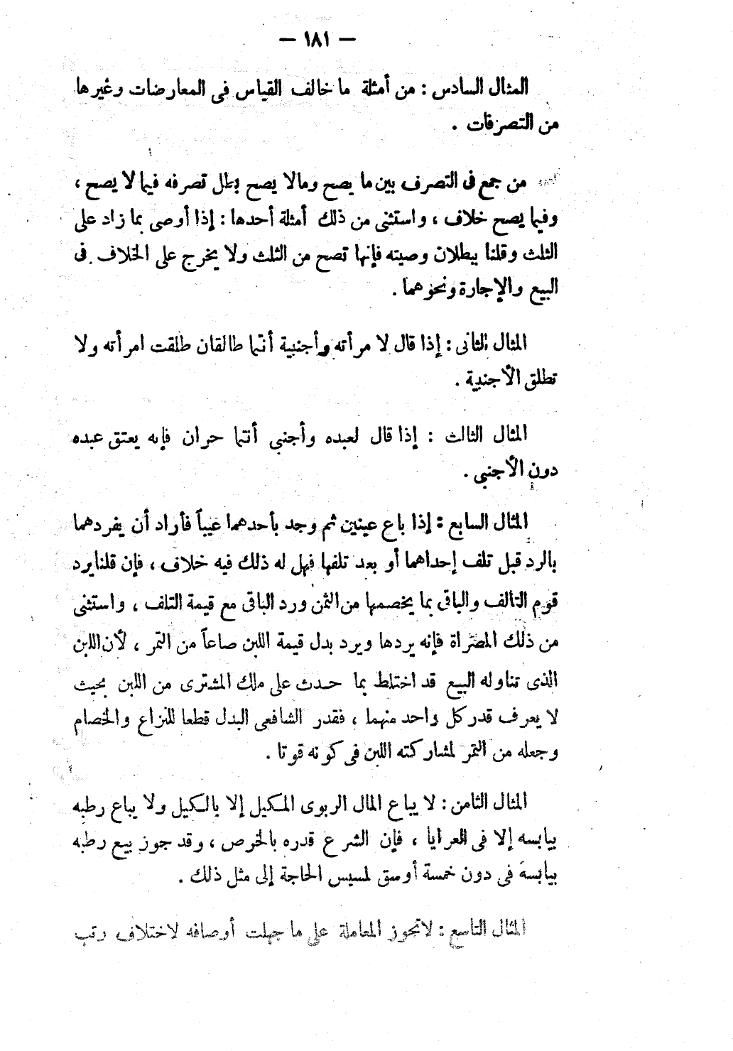 الْمِثَالُ السَّادِسُ: مِنْ أَمْثِلَةِ مَا خَالَفَ الْقِيَاسَ فِي الْمُعَارِضَاتِ وَغَيْرِهَا مِنْ التَّصَرُّفَاتِ.