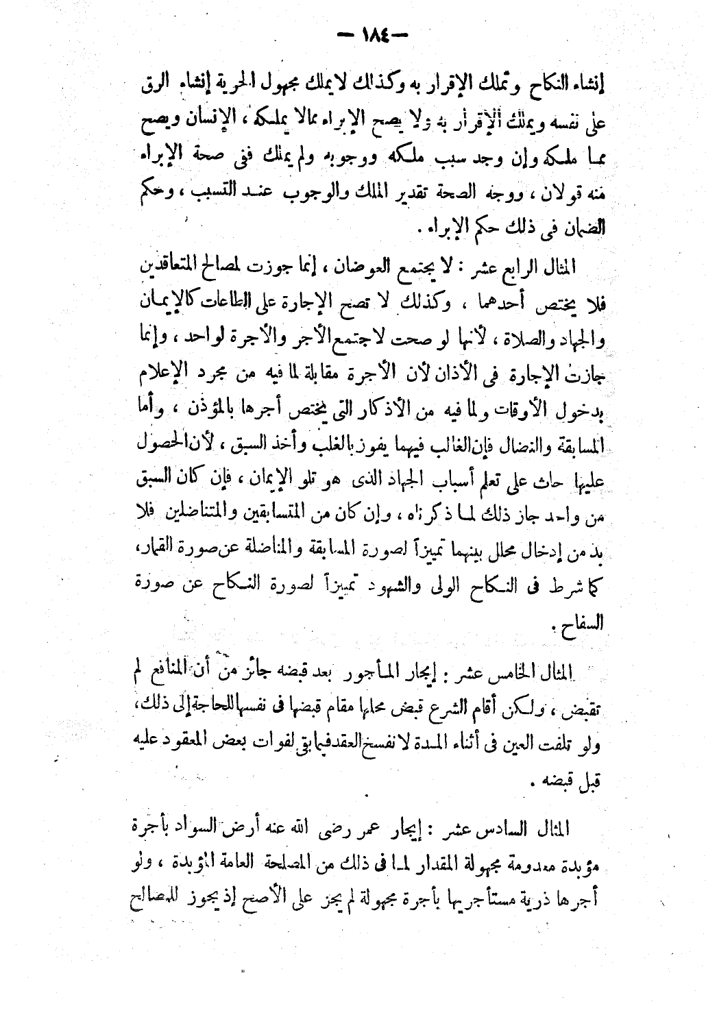 الْمِثَالُ السَّادِسَ عَشَرَ: إيجَارُ عُمَرَ - رَضِيَ اللَّهُ عَنْهُ - أَرْضَ السَّوَادِ بِأُجْرَةٍ مُؤَبَّدَةٍ مَعْدُومَةٍ مَجْهُولَةِ الْمِقْدَارِ لِمَا فِي