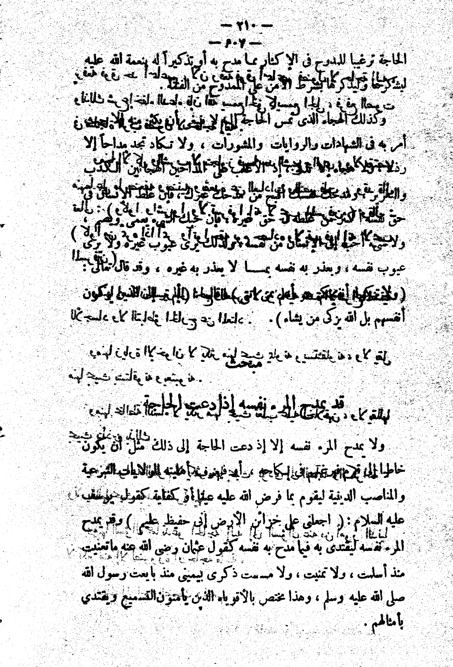 وَكَذَلِكَ الْهِجَاءُ الَّذِي تَمَسُّ الْحَاجَةُ إلَيْهِ لَا يَنْبَغِي أَنْ يُكْثِرَ مِنْهُ إلَّا حَيْثُ أُمِرَ بِهِ فِي الشَّهَادَاتِ وَالرِّوَايَاتِ وَالْمَشُورَاتِ، وَلَا تَكَادُ تَجِدُ مَدَّاحًا إلَّا رَذْلًا، وَلَا هَجَّاءً إلَّا نَذْلًا، إذْ الْأَغْلَبُ عَلَى الْمَدَّاحِينَ الْهَجَّائِينَ الْكَذِبُ وَالتَّغْرِيرُ، وَمَدْحُك نَفْسَك أَقْبَحُ مِنْ مَدْحِك غَيْرِك، فَإِنَّ غَلَطَ الْإِنْسَانِ فِي حَقِّ نَفْسِهِ أَكْثَرُ مِنْ غَلَطِهِ فِي حَقِّ غَيْرِهِ، فَإِنَّ حُبَّك الشَّيْءَ يُعْمِي وَيُصِمُّ، وَلَا شَيْءَ أَحَبُّ إلَى الْإِنْسَانِ مِنْ نَفْسِهِ، وَلِذَلِكَ يَرَى عُيُوبَ غَيْرِهِ وَلَا يَرَى عُيُوبَ نَفْسِهِ، وَيَعْذُرُ بِهِ نَفْسَهُ بِمَا لَا يَعْذُرُ بِهِ غَيْرَهُ، وَقَدْ قَالَ تَعَالَى: {فَلا تُزَكُّوا أَنْفُسَكُمْ هُوَ أَعْلَمُ بِمَنِ اتَّقَى} [النجم: 32] وَقَالَ: {أَلَمْ تَرَ إِلَى الَّذِينَ يُزَكُّونَ أَنْفُسَهُمْ بَلِ اللَّهُ يُزَكِّي مَنْ يَشَاءُ} [النساء: 49] . مَبْحَثٌ قَدْ يَمْدَحُ الْمَرْءُ نَفْسَهُ إذَا دَعَتْ الْحَاجَةُ وَلَا يَمْدَحُ الْمَرْءُ نَفْسَهُ إلَّا إذَا دَعَتْ الْحَاجَةُ إلَى ذَلِكَ مِثْلُ أَنْ يَكُونَ خَاطِبًا إلَى قَوْمٍ فَيُرَغِّبَهُمْ فِي نِكَاحِهِ، أَوْ فَيُعَرِّفَ أَهْلِيَّتَهُ الْوِلَايَاتِ الشَّرْعِيَّةَ وَالْمَنَاصِبَ الدِّينِيَّةَ لِيَقُومَ بِمَا فَرَضَ اللَّهُ عَلَيْهِ عَيْنًا أَوْ كِفَايَةً كَقَوْلِ يُوسُفَ - عَلَيْهِ السَّلَامُ -: {اجْعَلْنِي عَلَى خَزَائِنِ الأَرْضِ إِنِّي حَفِيظٌ عَلِيمٌ} [يوسف: 55] وَقَدْ يَمْدَحُ الْمَرْءُ نَفْسَهُ لِيُقْتَدَى بِهِ فِيمَا مَدَحَ بِهِ نَفْسَهُ كَقَوْلِ عُثْمَانَ - رَضِيَ اللَّهُ عَنْهُ - مَا تَعَنَّيْت مُنْذُ أَسْلَمْت، وَلَا تَمَنَّيْت، وَلَا مَسِسْت ذَكَرِي بِيَمِينِي مُنْذُ بَايَعْت رَسُولَ اللَّهِ - صَلَّى اللَّهُ عَلَيْهِ وَسَلَّمَ -، وَهَذَا مُخْتَصٌّ بِالْأَقْوِيَاءِ الَّذِينَ يَأْمَنُونَ التَّسْمِيعَ وَيُقْتَدَى بِأَمْثَالِهِمْ.