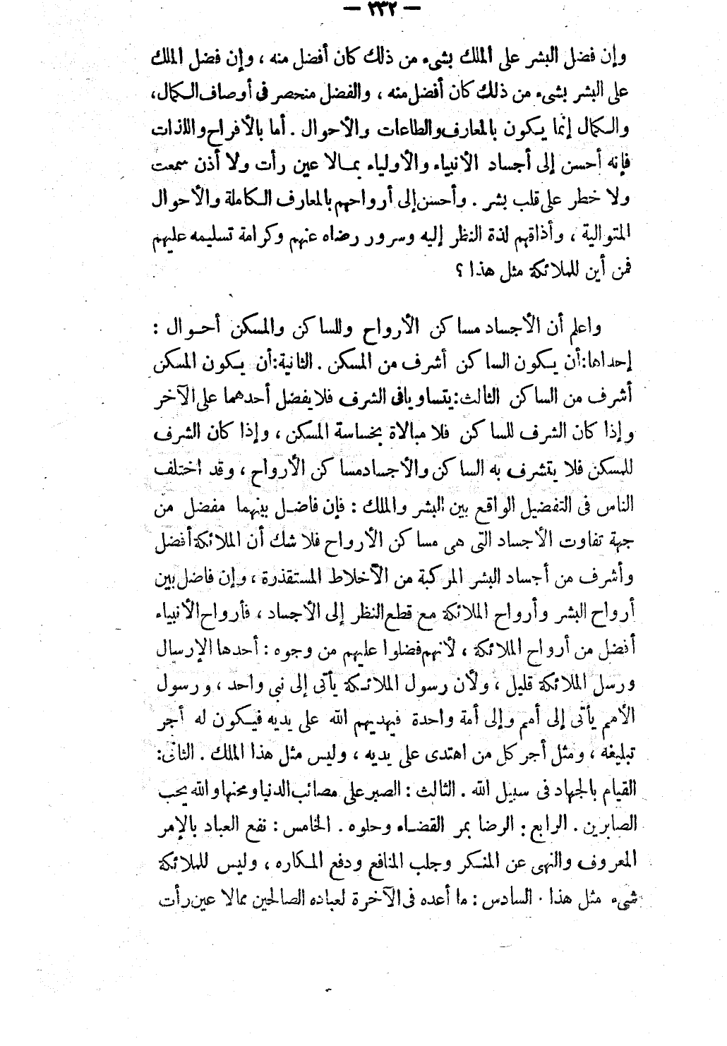 وَإِنْ فُضِّلَ الْبَشَرُ عَلَى الْمَلَكِ بِشَيْءٍ مِنْ ذَلِكَ كَانَ أَفْضَلَ مِنْهُ، وَإِنْ فُضِّلَ الْمَلَكُ عَلَى الْبَشَرِ بِشَيْءٍ مِنْ ذَلِكَ كَانَ أَفْضَلَ مِنْهُ، وَالْفَضْلُ مُنْحَصِرٌ فِي أَوْصَافِ الْكَمَالِ، وَالْكَمَالُ إنَّمَا يَكُونُ بِالْمَعَارِفِ وَالطَّاعَاتِ وَالْأَحْوَالِ.