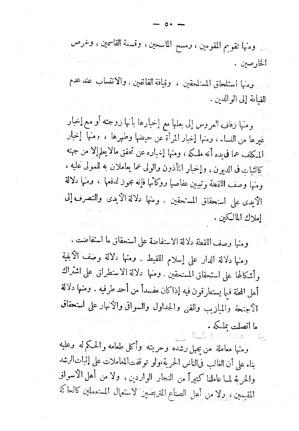 وَمِنْهَا دَلَالَةُ الْأَيْدِي وَالتَّصَرُّفِ إلَى إمْلَاكِ الْمَالِكِينَ، وَمِنْهَا وَصْفُ اللُّقَطَةِ دَلَالَةُ الِاسْتِفَاضَةِ عَلَى اسْتِحْقَاقِ مَا اسْتَفَاضَتْ.