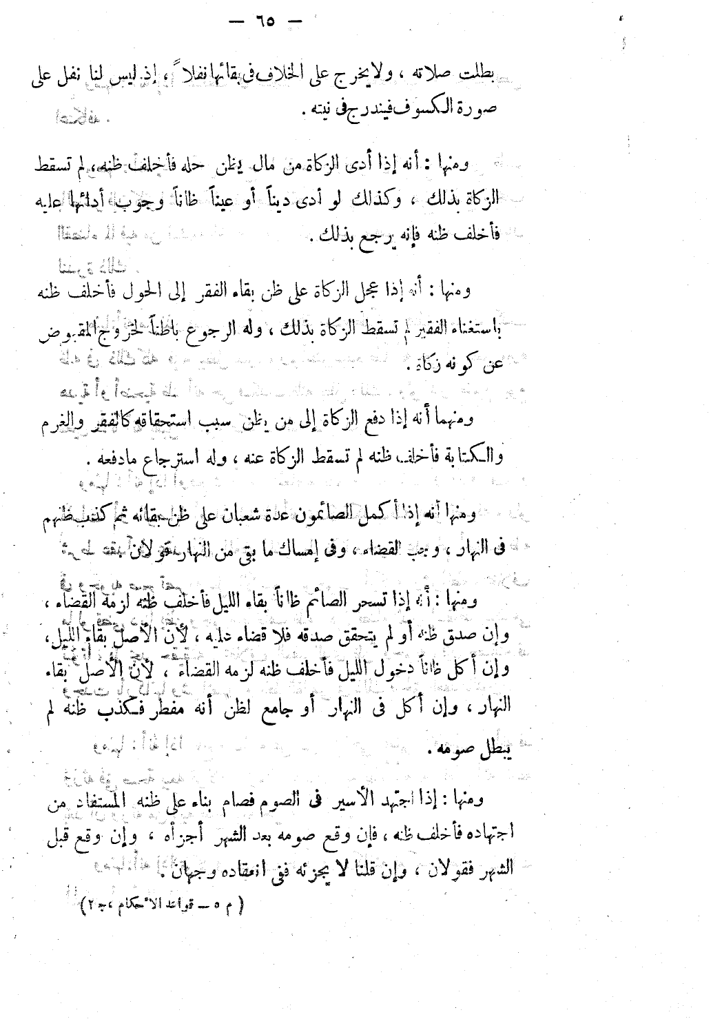 وَمِنْهَا: أَنَّهُ إذَا أَدَّى الزَّكَاةَ مِنْ مَالِ يَظُنُّ حِلَّهُ فَأَخْلَفَ ظَنَّهُ، لَمْ تَسْقُطْ الزَّكَاةُ بِذَلِكَ.