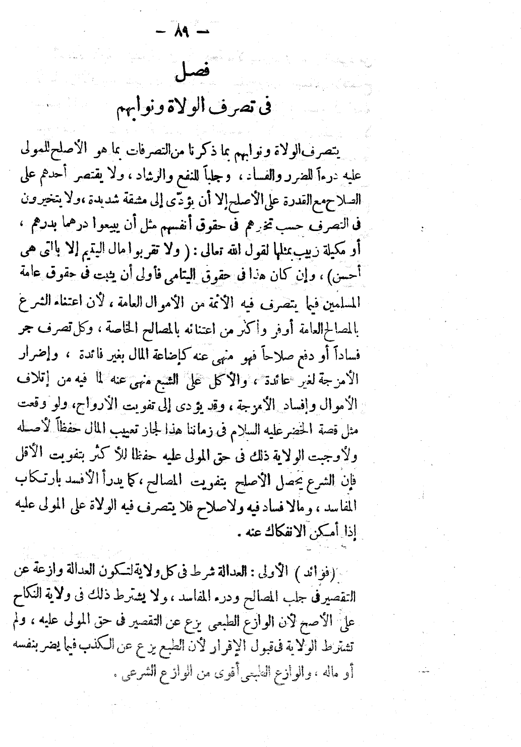[فَصْلٌ فِي تَصَرُّفِ الْوُلَاةِ وَنُوَّابِهِمْ]