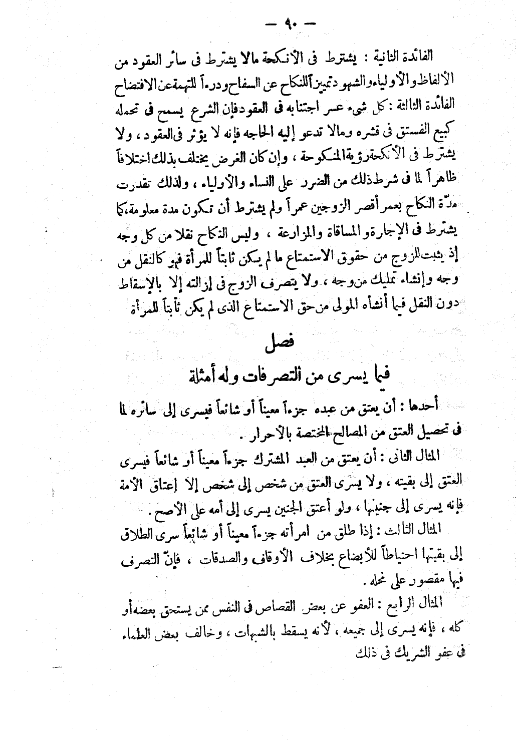 [فَصْلٌ فِيمَا يَسْرِي مِنْ التَّصَرُّفَاتِ وَلَهُ أَمْثِلَةٌ]