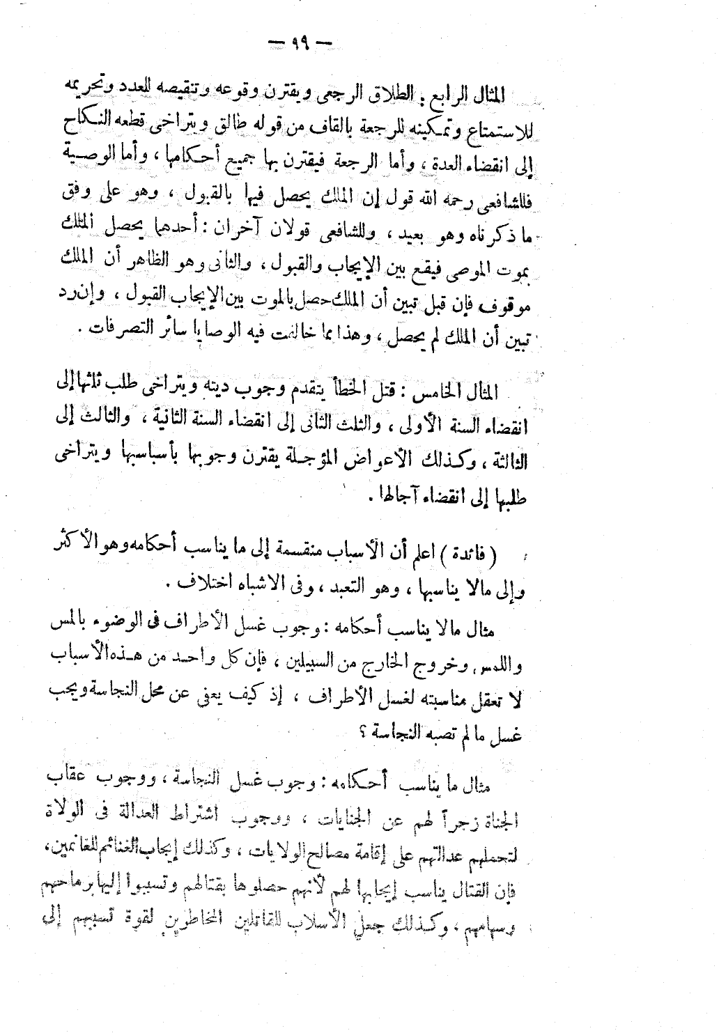 الْمِثَالُ الْخَامِسُ: قَتْلُ الْخَطَأِ يَتَقَدَّمُ وُجُوبُ دِيَتِهِ وَيَتَرَاخَى طَلَبُ ثُلُثِهَا إلَى انْقِضَاءِ السَّنَةِ الْأُولَى، وَالثُّلُثُ الثَّانِي إلَى انْقِضَاءِ السَّنَةِ الثَّانِيَةِ، وَالثَّالِثُ إلَى الثَّالِثَةِ، وَكَذَلِكَ الْأَعْوَاضُ الْمُؤَجَّلَةُ يَقْتَرِنُ وُجُوبُهَا بِأَسْبَابِهَا وَيَتَرَاخَى طَلَبُهَا إلَى انْقِضَاءِ آجَالِهَا.