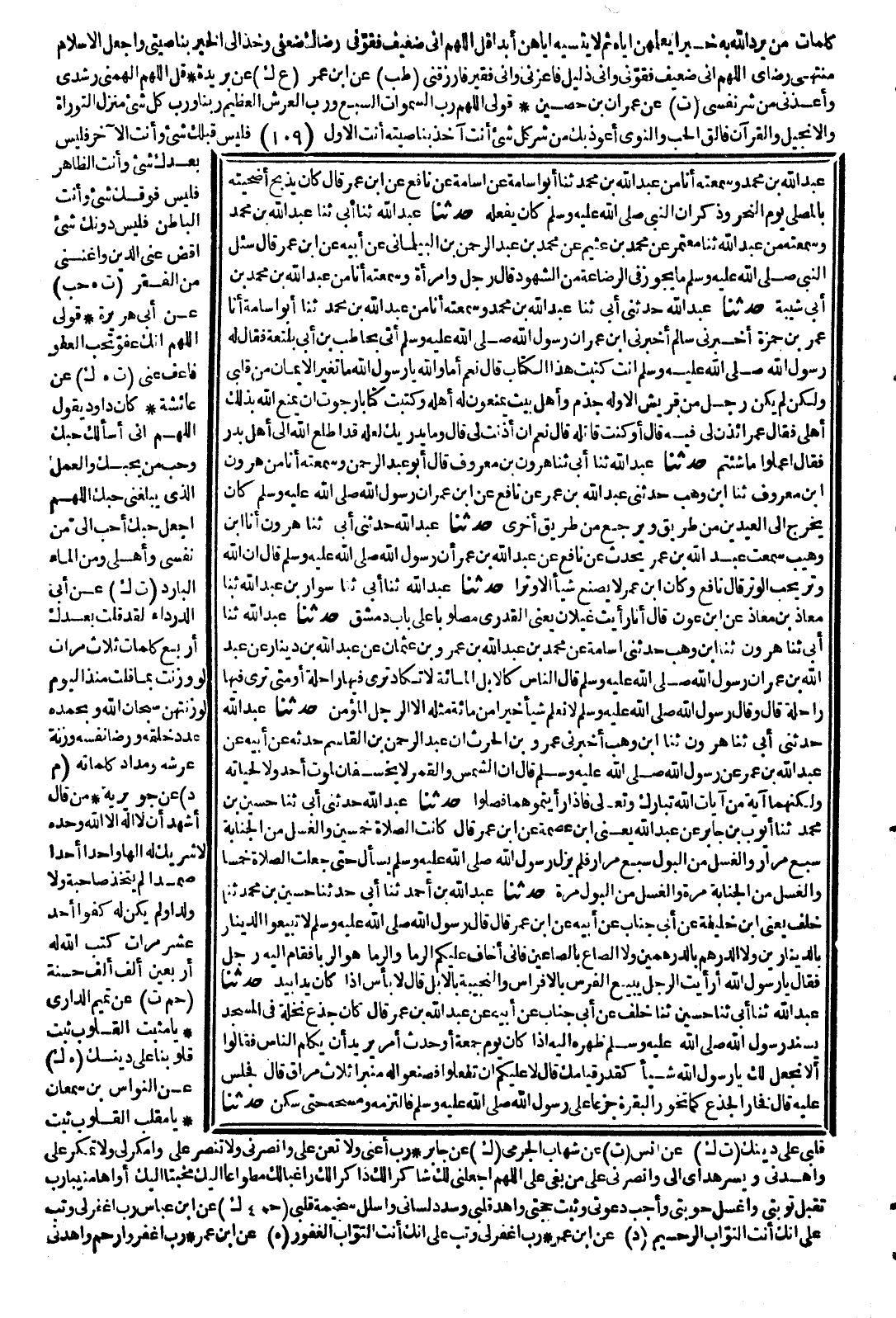 5877- حَدَّثَنَا عَبْدُ اللهِ بْنُ مُحَمَّدٍ ، (قَالَ عَبْدُ اللهِ بْنُ أَحْمَدَ (1) : وَسَمِعْتُهُ مِنْ عَبْدِ اللَّهِ) ، حَدَّثَنَا مُعْتَمِرٌ ، عَنْ مُحَمَّدِ بْنِ عُثَيْمٍ ، عَنْ مُحَمَّدِ بْنِ عَبْدِ الرَّحْمَنِ بْنِ الْبَيْلَمَانِيِّ ، عَنْ أَبِيهِ ، عَنِ ابْنِ عُمَرَ قَالَ : سُئِلَ النَّبِيُّ صَلَّى اللَّهُ عَلَيْهِ وَسَلَّمَ مَا يَجُوزُ فِي الرَّضَاعَةِ مِنَ الشُّهُودِ ؟ قَالَ : رَجُلٌ ، أَوِ امْرَأَةٌ ، قَالَ عَبْدُ اللهِ بْنُ أَحْمَدَ وَسَمِعْتُهُ أَنَا مِنْ عَبْدِ اللهِ بْنِ مُحَمَّدِ بْنِ أَبِي شَيْبَةَ.