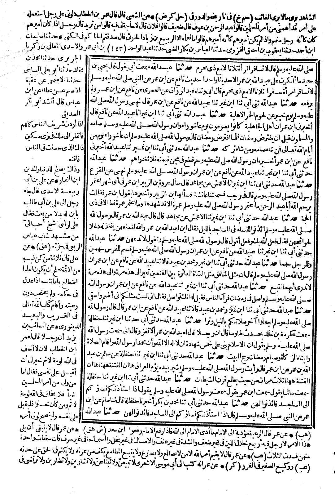 6301- حَدَّثَنَا ابْنُ نُمَيْرٍ ، حَدَّثَنَا حَنْظَلَةُ ، سَمِعْتُ عِكْرِمَةَ بْنَ خَالِدٍ ، يُحَدِّثُ طَاوُوسًا ، قَالَ : إِنَّ رَجُلاً قَالَ : لِعَبْدِ اللهِ بْنِ عُمَرَ : أَلاَ تَغْزُو ؟ قَالَ : إِنِّي سَمِعْتُ رَسُولَ اللهِ صَلَّى اللَّهُ عَلَيْهِ وَسَلَّمَ يَقُولُ : إِنَّ الإِِسْلاَمَ بُنِيَ عَلَى خَمْسٍ : شَهَادَةُ أَنْ لاَ إِلَهَ إِلاَّ اللَّهُ ، وَأَنَّ مُحَمَّدًا رَسُولُ اللهِ ، وَإِقَامُ الصَّلاَةِ ، وَإِيتَاءُ الزَّكَاةِ ، وَصِيَامُ رَمَضَانَ ، وَحَجُّ الْبَيْتِ.