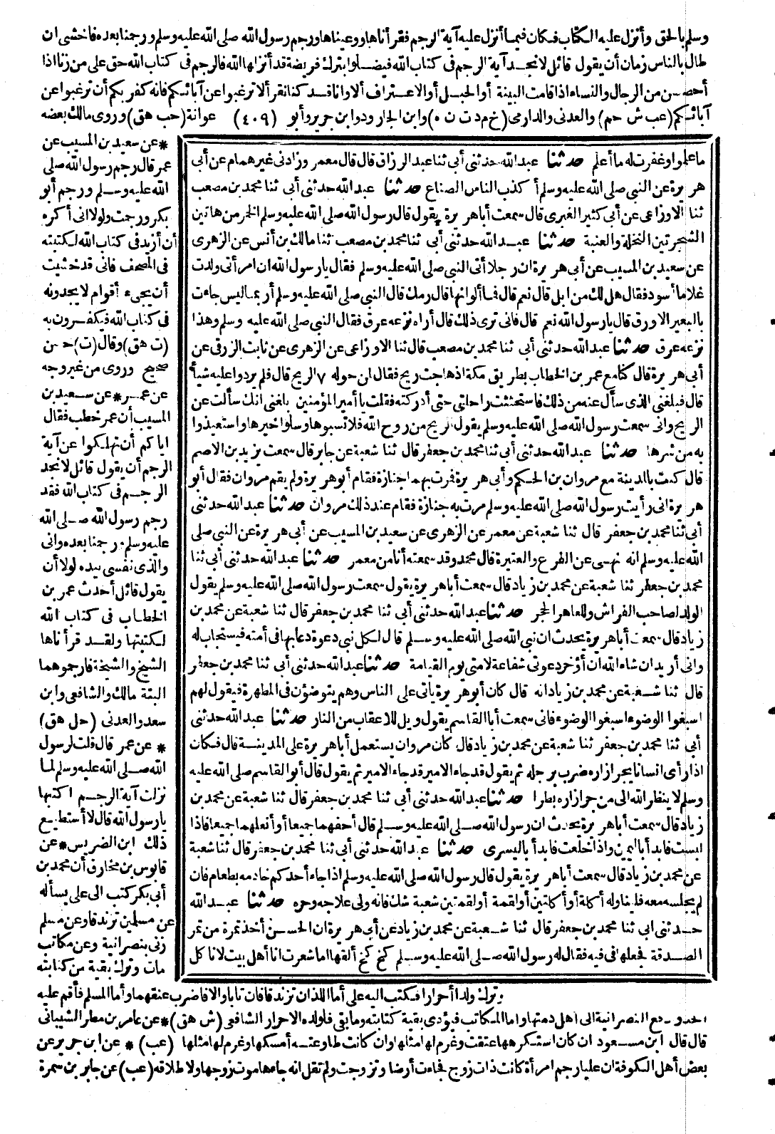 (9302) 9291- حَدَّثَنَا مُحَمَّدُ بْنُ جَعْفَرٍ ، حَدَّثَنَا شُعْبَةُ ، عَنْ مُحَمَّدِ بْنِ زِيَادٍ ، قَالَ : سَمِعْتُ أَبَا هُرَيْرَةَ ، يَقُولُ : سَمِعْتُ رَسُولَ اللهِ صَلَّى اللَّهُ عَلَيْهِ وَسَلَّمَ يَقُولُ : الْوَلَدُ لِصَاحِبِ الْفِرَاشِ ، وَلِلْعَاهِرِ الْحَجَرُ.