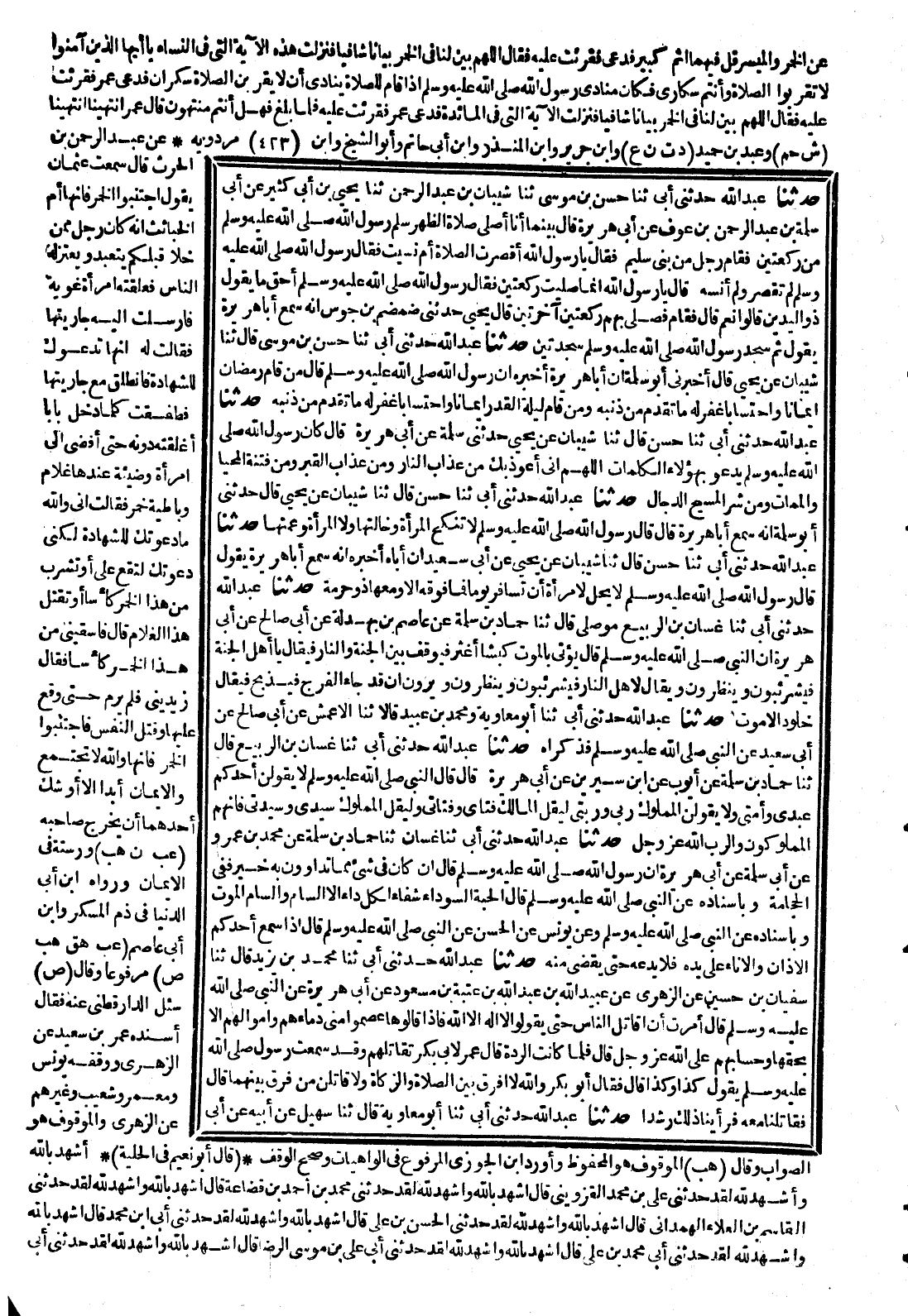 (9444) 9458- حَدَّثَنَا حَسَنُ بْنُ مُوسَى ، حَدَّثَنَا شَيْبَانُ بْنُ عَبْدِ الرَّحْمَنِ ، حَدَّثَنَا يَحْيَى بْنُ أَبِي كَثِيرٍ ، عَنْ أَبِي سَلَمَةَ بْنِ عَبْدِ الرَّحْمَنِ ، عَنْ أَبِي هُرَيْرَةَ ، قَالَ : بَيْنَمَا أَنَا أُصَلِّي مع رَسُولُ اللهِ صَلَّى اللَّهُ عَلَيْهِ وَسَلَّمَ صَلاَةَ الظُّهْرِ ، سَلَّمَ رَسُولُ اللهِ صَلَّى اللَّهُ عَلَيْهِ وَسَلَّمَ مِنْ رَكْعَتَيْنِ ، فَقَامَ رَجُلٌ مِنْ بَنِي سُلَيْمٍ ، فَقَالَ : يَا رَسُولَ اللهِ ، أَقَصُرَتِ الصَّلاَةُ ، أَمْ نَسِيتَ ؟ فَقَالَ رَسُولُ اللهِ صَلَّى اللَّهُ عَلَيْهِ وَسَلَّمَ : لَمْ تَقْصُرْ الصلاة ، وَلَمْ أَنْسَهْ ، قَالَ : يَا رَسُولَ اللهِ ، إِنَّمَا صَلَّيْتَ رَكْعَتَيْنِ ، فَقَالَ رَسُولُ اللهِ صَلَّى اللَّهُ عَلَيْهِ وَسَلَّمَ : أَحَقٌّ مَا يَقُولُ ذُو الْيَدَيْنِ ؟ قَالُوا : نَعَمْ ، قَالَ : فَقَامَ ، فَصَلَّى بِهِمْ رَكْعَتَيْنِ آخِرَيَيْنِ .