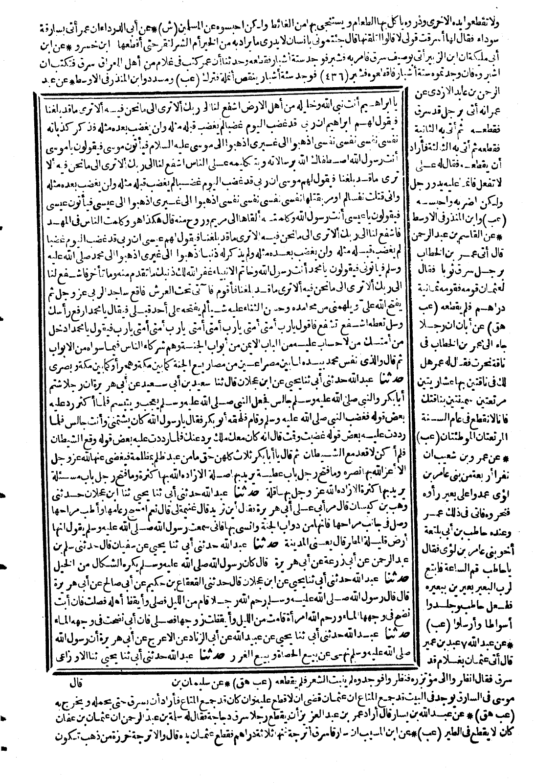 يَا إِبْرَاهِيمُ ، أَنْتَ نَبِيُّ اللهِ وَخَلِيلُهُ مِنْ أَهْلِ الأَرْضِ ، اشْفَعْ لَنَا إِلَى رَبِّكَ أَلاَ تَرَى إِلَى مَا نَحْنُ فِيهِ ؟ أَلاَ تَرَى مَا قَدْ بَلَغَنَا ؟ فَيَقُولُ لَهُمْ إِبْرَاهِيمُ : إِنَّ رَبِّي قَدْ غَضِبَ الْيَوْمَ غَضَبًا لَمْ يَغْضَبْ قَبْلَهُ مِثْلَهُ ، وَلَنْ يَغْضَبَ بَعْدَهُ مِثْلَهُ فَذَكَرَ كَذِبَاتِهِ ، نَفْسِي نَفْسِي ، نَفْسِي نَفْسِي ، اذْهَبُوا إِلَى غَيْرِي ، اذْهَبُوا إِلَى مُوسَى ، فَيَأْتُونَ مُوسَى ، فَيَقُولُونَ : يَا مُوسَى ، أَنْتَ رَسُولُ اللهِ ، اصْطَفَاكَ اللَّهُ بِرِسَالاَتِهِ ، وَبِتَكْلِيمِهِ عَلَى النَّاسِ ، اشْفَعْ لَنَا إِلَى رَبِّكَ ، أَلاَ تَرَى إِلَى مَا نَحْنُ فِيهِ ؟ أَلاَ تَرَى مَا قَدْ بَلَغَنَا ؟ فَيَقُولُ لَهُمْ مُوسَى : إِنَّ رَبِّي قَدْ غَضِبَ الْيَوْمَ غَضَبًا لَمْ يَغْضَبْ قَبْلَهُ مِثْلَهُ ، وَلَنْ يَغْضَبَ بَعْدَهُ مِثْلَهُ ، وَإِنِّي قَتَلْتُ نَفْسًا لَمْ أُومَرْ بِقَتْلِهَا ، نَفْسِي نَفْسِي ، نَفْسِي نَفْسِي ، اذْهَبُوا إِلَى غَيْرِي ، اذْهَبُوا إِلَى عِيسَى ، فَيَأْتُونَ عِيسَى ، فَيَقُولُونَ : يَا عِيسَى ، أَنْتَ رَسُولُ اللهِ ، وَكَلِمَتُهُ أَلْقَاهَا إِلَى مَرْيَمَ ، وَرُوحٌ مِنْهُ ، قَالَ : هَكَذَا هُوَ ، وَكَلَّمْتَ النَّاسَ فِي الْمَهْدِ ، فَاشْفَعْ لَنَا إِلَى رَبِّكَ ، أَلاَ تَرَى إِلَى مَا نَحْنُ فِيهِ ؟ أَلاَ تَرَى مَا قَدْ بَلَغَنَا ؟ فَيَقُولُ لَهُمْ عِيسَى ، إِنَّ رَبِّي قَدْ غَضِبَ الْيَوْمَ غَضَبًا لَمْ يَغْضَبْ قَبْلَهُ مِثْلَهُ ، وَلَنْ يَغْضَبَ بَعْدَهُ مِثْلَهُ ، وَلَمْ يَذْكُرْ لَهُ ذَنْبًا ، اذْهَبُوا إِلَى غَيْرِي ، اذْهَبُوا إِلَى مُحَمَّدٍ ، فَيَأْتُونِي فَيَقُولُونَ : يَا مُحَمَّدُ ، أَنْتَ رَسُولُ اللهِ ، وَخَاتَمُ الأَنْبِيَاءِ ، غَفَرَ اللَّهُ لَكَ مَا تَقَدَّمَ مِنْ ذَنْبَكَ ، وَمَا تَأَخَّرَ ، فَاشْفَعْ لَنَا إِلَى رَبِّكَ ، أَلاَ تَرَى إِلَى مَا نَحْنُ فِيهِ ؟ أَلاَ تَرَى مَا قَدْ بَلَغَنَا ؟ فَأَقُومُ فَآتِي تَحْتَ الْعَرْشِ ، فَأَقَعُ سَاجِدًا لِرَبِّي عَزَّ وَجَلَّ ، ثُمَّ يَفْتَحُ اللَّهُ عَلَيَّ وَيُلْهِمُنِي مِنْ مَحَامِدِهِ ، وَحُسْنِ الثَّنَاءِ عَلَيْهِ ، شَيْئًا لَمْ يَفْتَحْهُ عَلَى أَحَدٍ قَبْلِي ، فَيُقَالُ : يَا مُحَمَّدُ ، ارْفَعْ رَأْسَكَ ، سَلْ تُعْطَهْ ، اشْفَعْ تُشَفَّعْ ، فَأَقُولُ : يَا رَبِّ أُمَّتِي أُمَّتِي ، يَا رَبِّ أُمَّتِي أُمَّتِي ، يَا رَبِّ أُمَّتِي أُمَّتِي ، يَا رَبِّ ، فَيَقُولُ : يَا مُحَمَّدُ ، أَدْخِلْ مِنْ أُمَّتِكَ مَنْ لاَ حِسَابَ عَلَيْهِ مِنَ الْبَابِ الأَيْمَنِ مِنْ أَبْوَابِ الْجَنَّةِ ، وَهُمْ شُرَكَاءُ النَّاسِ فِيمَا سِوَاهُ مِنَ الأَبْوَابِ ، ثُمَّ قَالَ : وَالَّذِي نَفْسُ مُحَمَّدٍ بِيَدِهِ ، لَمَا بَيْنَ مِصْرَاعَيْنِ مِنْ مَصَارِيعِ الْجَنَّةِ كَمَا بَيْنَ مَكَّةَ وَهَجَرَ ، أَوْ كَمَا بَيْنَ مَكَّةَ وَبُصْرَى.