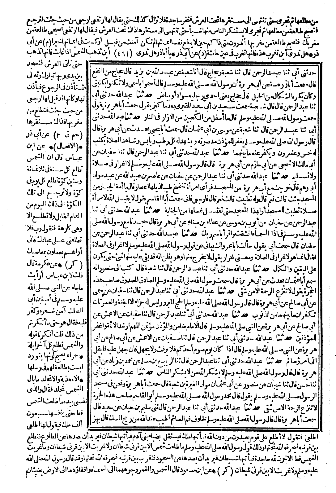 حَدَّثَنَا عَبْدُ اللهِ ، قَالَ : سَمِعْتُ أَبِي ، يَقُولُ : سَأَلْتُ أَبَا عَمْرٍو الشَّيْبَانِيَّ ، عَنْ قَوْلِ النَّبِيِّ صَلَّى اللَّهُ عَلَيْهِ وَسَلَّمَ : لاَ إِغْرَارَ فِي الصَّلاَةِ ، فَقَالَ : إِنَّمَا هُوَ : لاَ غِرَارَ فِي الصَّلاَةِ قَالَ أَبِي : وَمَعْنَى غِرَارٍ ، يَقُولُ : لاَ يَخْرُجُ مِنْهَا ، وَهُوَ يَظُنُّ أَنَّهُ قَدْ بَقِيَ عَلَيْهِ مِنْهَا شَيْءٌ حَتَّى يَكُونَ عَلَى الْيَقِينِ وَالْكَمَالِ.