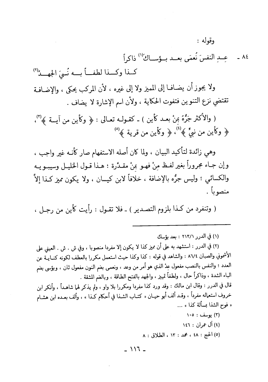 (والأكثر جرُّهُ بمنْ بعد كأين) - كقوله تعالى: (وكأين من آية)، (وكأين من نبي)، (وكأين من قرية).
