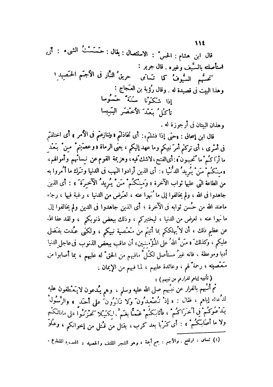 قَالَ ابْنُ هِشَامٍ: الْحَسُّ: الِاسْتِئْصَالُ: يُقَالُ: حَسَسْتُ الشَّيْءَ: أَيْ اسْتَأْصَلْتُهُ بِالسَّيْفِ وَغَيْرِهِ. قَالَ جَرِيرٌ: