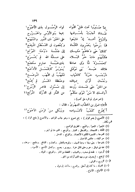 (شِعْرُ ضِرَارٍ فِي الرَّدِّ عَلَى كَعْبٍ) :