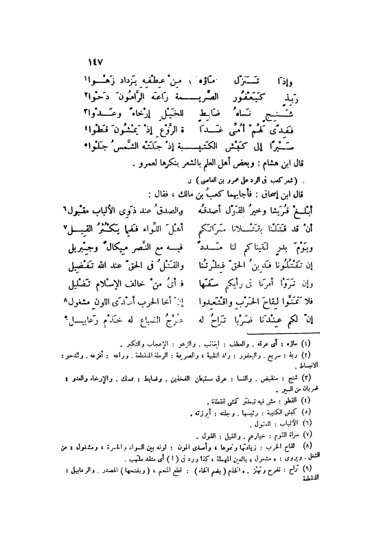 قَالَ ابْنُ إسْحَاقَ: فَأَجَابَهُمَا كَعْبُ بْنُ مَالِكٍ، فَقَالَ: