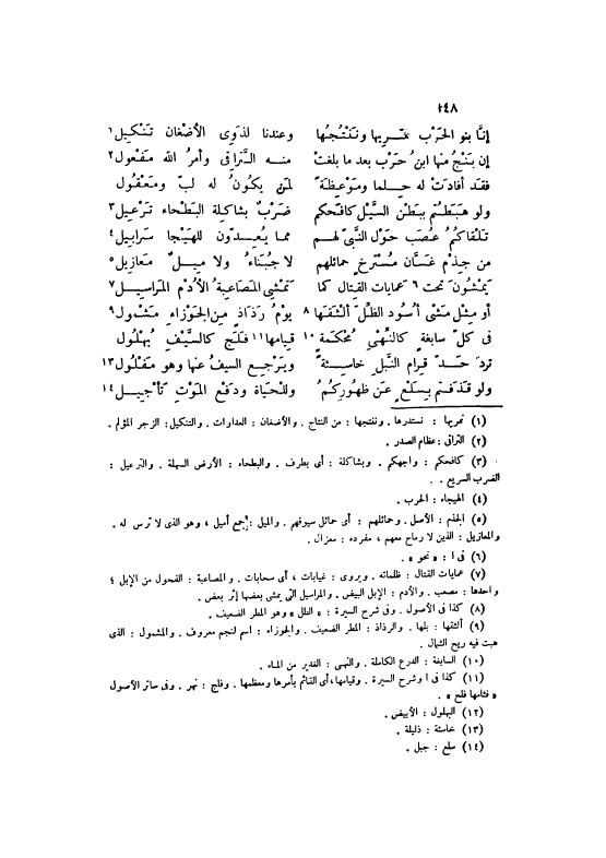 [5] الجذم: الأَصْل. وحمائلهم: أَي حمائل سيوفهم. والميل: جمع أميل، وَهُوَ الّذي لَا ترس لَهُ.