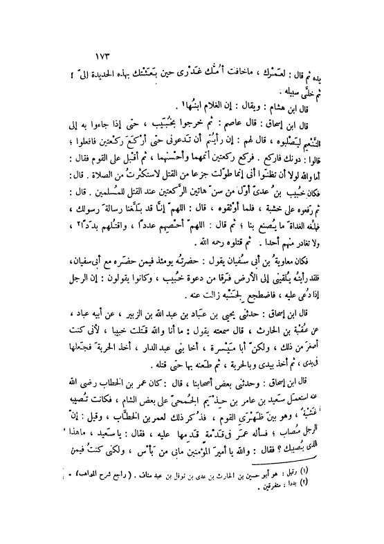فَكَانَ خُبَيْبُ بْنُ عَدِيٍّ أَوَّلَ مَنْ سَنَّ هَاتَيْنِ الرَّكْعَتَيْنِ عِنْدَ الْقَتْلِ لِلْمُسْلِمِينَ. قَالَ: