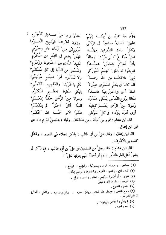 [6] روح الْقُدس: جِبْرِيل عَلَيْهِ السَّلَام. وينكى عدوه: يُبَالغ فِي ضَرَره. والمعلم: الْموضع الْمُرْتَفع المشرف.