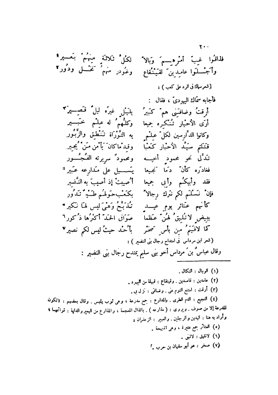 (شِعْرُ ابْنِ مِرْدَاسٍ فِي امْتِدَاحِ رِجَالِ بَنِي النَّضِيرِ) :
