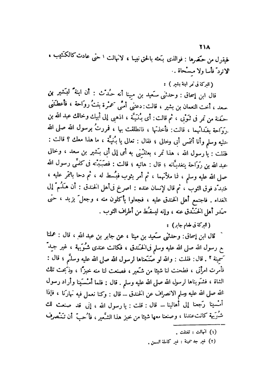 قَالَ ابْنُ إسْحَاقَ: وَحَدَّثَنِي سَعِيدُ بْنُ مِينَا، عَنْ جَابِرِ بْنِ عَبْدِ اللَّهِ، قَالَ: عَمِلْنَا مَعَ رَسُولِ اللَّهِ صَلَّى اللهُ عَلَيْهِ وَسَلَّمَ فِي الْخَنْدَقِ، فَكَانَتْ عِنْدِي شُوَيْهَةٌ، غَيْرُ جِدٍّ سَمِينَةٌ [2] . قَالَ: فَقُلْتُ: وَاَللَّهِ لَوْ صَنَعْنَاهَا لرَسُول الله صلى الله عَلَيْهِ وسلّم، قَالَ: