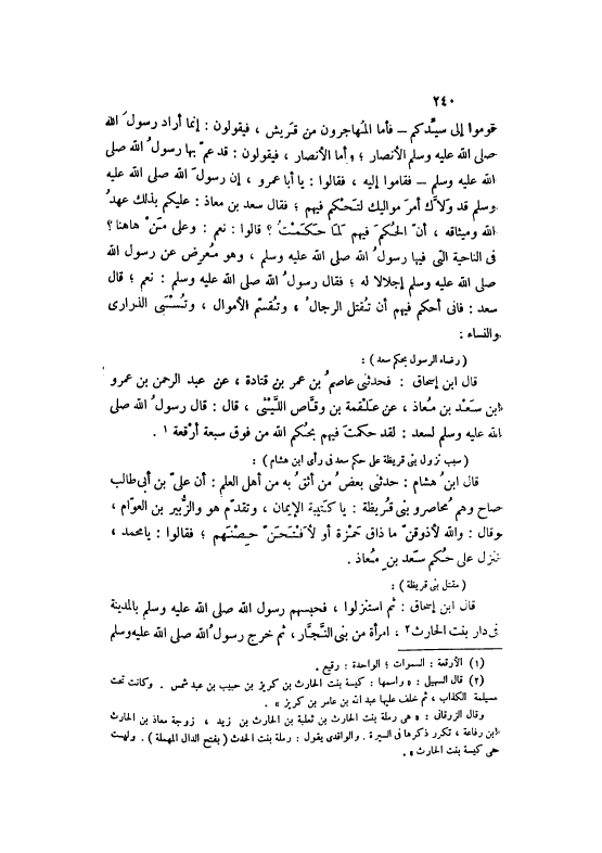 (سَبَبُ نُزُولِ بَنِي قُرَيْظَةَ عَلَى حُكْمِ سَعْدٍ فِي رَأْيِ ابْنِ هِشَامٍ) :