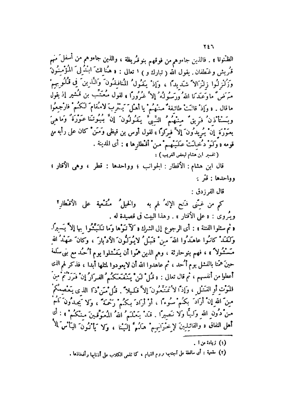 «ثُمَّ سُئِلُوا الْفِتْنَةَ 33: 14» : أَيْ الرُّجُوعَ إلَى الشِّرْكِ لَآتَوْها وَما تَلَبَّثُوا بِها إِلَّا يَسِيراً.