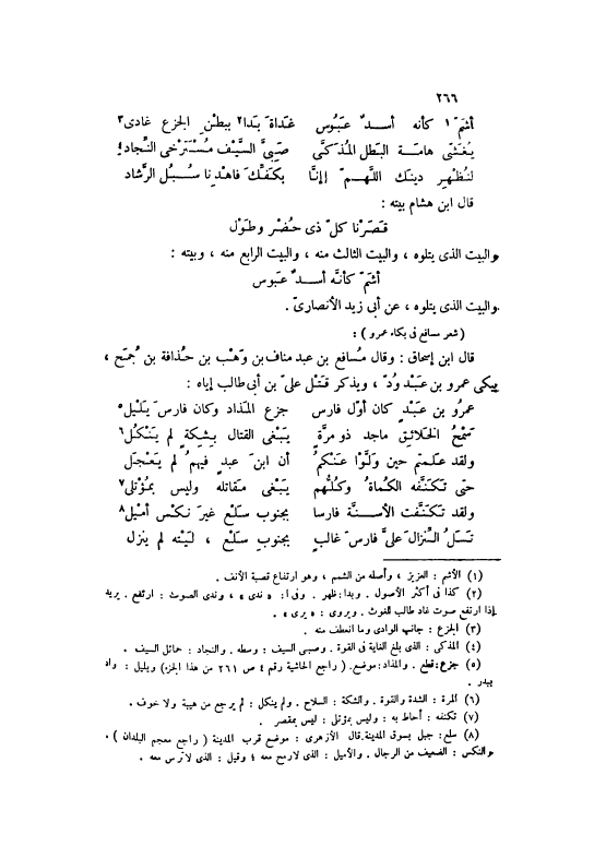 قَالَ ابْنُ إسْحَاقَ: وَقَالَ مُسَافِعُ بْنُ عَبْدِ مَنَافِ بْنِ وَهْبِ بْنِ حُذَافَةَ بْنِ جُمَحٍ، يَبْكِي عَمْرَو بْنَ عَبْدِ وُدٍّ، وَيَذْكُرُ قَتْلَ عَلِيِّ بْنِ أَبِي طَالِبٍ إيَّاهُ: