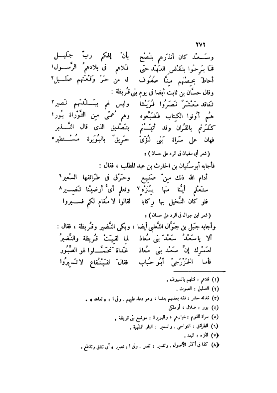 تَفَاقَدَ مَعْشَرٌ نَصَرُوا قُرَيْشًا ... وَلَيْسَ لَهُمْ بِبَلْدَتِهِمْ نَصِيرُ [3]